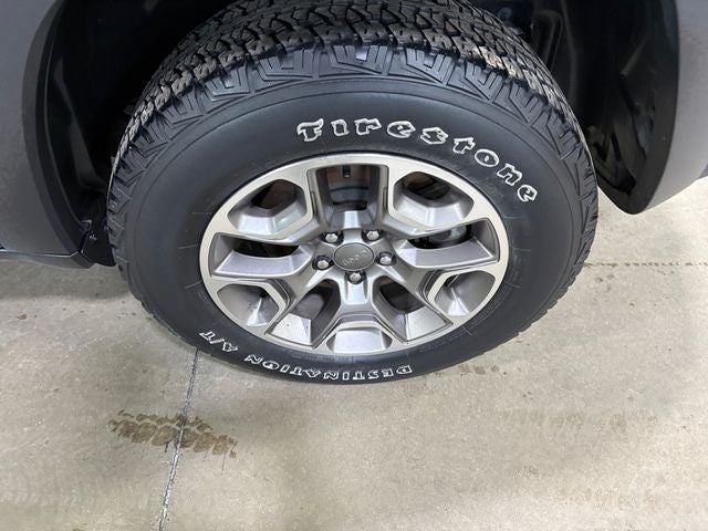 3.517 Axle Ratio, 4-Wheel Disc Brakes, 6 Speakers, 8.4 Touchscreen Display, ABS brakes, Air Conditioning, Alloy wheels, AM/FM radio: SiriusXM, Anti-whiplash front head restraints, Apple CarPlay, Apple CarPlay/Android Auto, Automatic temperature control, AutoStick Automatic Transmission, Auxiliary Transmission Oil Cooler, Brake assist, Cloth/Premium Vinyl Bucket Seats, Cold Weather Group, Compass, Delay-off headlights, Driver door bin, Driver vanity mirror, Dual Bright Exhaust Tips, Dual front impact airbags, Dual front side impact airbags, Electronic Stability Control, Engine Block Heater, Engine Oil Cooler, Exterior Mirrors Courtesy Lamps, Exterior Mirrors w/Supplemental Signals, Four wheel independent suspension, Front anti-roll bar, Front Bucket Seats, Front Center Armrest, Front dual zone A/C, Front fog lights, Front reading lights, Fully automatic headlights, Google Android Auto, GPS Antenna Input, Heated door mirrors, Heated Front Seats, Heated Steering Wheel, Hill Descent Control, Illuminated entry, Integrated Voice Command w/Bluetooth®, Knee airbag, Leather Shift Knob, Leather Wrapped Steering Wheel, Low tire pressure warning, Occupant sensing airbag, Off Road Suspension, Outside temperature display, Overhead airbag, Overhead console, Panic alarm, ParkView Rear Back-Up Camera, Passenger door bin, Passenger vanity mirror, Power door mirrors, Power driver seat, Power steering, Power windows, Quick Order Package 27E Trailhawk, Radio data system, Radio: Uconnect 4 w/8.4 Display, Rear anti-roll bar, Rear reading lights, Rear seat center armrest, Rear side impact airbag, Rear window defroster, Rear window wiper, Remote keyless entry, Roof rack: rails only, SiriusXM Satellite Radio, Speed control, Speed-sensing steering, Split folding rear seat, Spoiler, Steering wheel mounted audio controls, Stop-Start Multiple VSM System, Tachometer, Telescoping steering wheel, Tilt steering wheel, Traction control, Trip computer, Turn signal indicator mirrors, USB Host Flip, Variably intermittent wipers, Voltmeter, Wheels: 17 x 7.5 Painted Diamond Cut Aluminum, Windshield Wiper De-Icer.