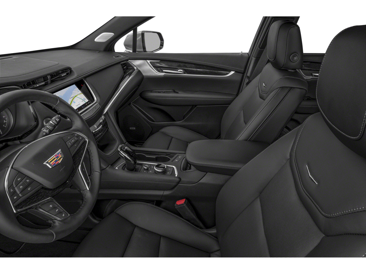 14 Speakers, 155 Amp Alternator, 2-Way Power Driver Lumbar Control Seat Adjuster, 2-Way Power Passenger Lumbar Control Seat Adjuster, 4-Wheel Disc Brakes, 4-Wheel Independent Suspension, ABS brakes, Air Conditioning, Air Ionizer, Alloy wheels, AM/FM radio: SiriusXM, Audio memory, Auto High-beam Headlights, Auto-dimming door mirrors, Auto-dimming Rear-View mirror, Automatic Dual-Zone Climate Control, Automatic Emergency Braking, Automatic Stop/Start w/Disable, Automatic temperature control, Bodyside moldings, Bose Performance Series 14-Speaker System, Brake assist, Bumpers: body-color, Compass, Delay-off headlights, Driver door bin, Driver vanity mirror, Dual Driver Info Center Display Gauge Cluster, Dual front impact airbags, Dual front side impact airbags, Electronic Stability Control, Emergency communication system: OnStar and Cadillac connected services capable, Four wheel independent suspension, Front & Rear Park Assist, Front anti-roll bar, Front Bucket Seats, Front Center Armrest, Front dual zone A/C, Front reading lights, Fully automatic headlights, Garage door transmitter, Genuine wood dashboard insert, Genuine wood door panel insert, HD Rear Vision Camera, Heated door mirrors, Heated Driver & Front Passenger Seats, Heated front seats, Heated Rear Outboard Seating Positions, Heated steering wheel, Illuminated entry, Inside Rear-View Auto-Dimming Mirror, Knee airbag, Leather Seating Surfaces w/Mini Perforated Inserts, Leather steering wheel, Low tire pressure warning, Memory seat, Monochrome Cadillac Emblems (LPO), Navigation System, Occupant sensing airbag, Outside temperature display, Overhead airbag, Overhead console, Panic alarm, Passenger door bin, Passenger vanity mirror, Power door mirrors, Power driver seat, Power Liftgate, Power moonroof: UltraView, Power passenger seat, Power steering, Power windows, Premium Luxury Package 1SD, Puddle Lamps w/Cadillac Crest (LPO), Radio data system, Radio: Cadillac User Experience w/Embedded Nav, Rain sensing wipers, Rear anti-roll bar, Rear reading lights, Rear seat center armrest, Rear window defroster, Rear window wiper, Remote keyless entry, Security system, SiriusXM w/360L, Speed control, Speed-sensing steering, Split folding rear seat, Spoiler, Steering wheel memory, Steering wheel mounted audio controls, Tachometer, Teen Driver, Telescoping steering wheel, Tilt steering wheel, Traction control, Tri-Zone Automatic Climate Control, Trip computer, Turn signal indicator mirrors, Variably intermittent wipers, Ventilated Driver & Front Passenger Seats, Voltmeter, Wheels: 18 6-Split Spoke Alloy, Wireless Apple CarPlay/Wireless Android Auto.